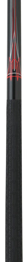 The Action KRM03 pool cue is sticking with the hot rod design concept and features thin red and grey pinstripes over a black maple forearm and sleeve. It comes complete with a 29” hard rock maple shaft, 1” fiber ferrule, a 7-layer boar skin tip, steel collar, 5/16x18 pin, and a black “tire tread” style rubber grip.